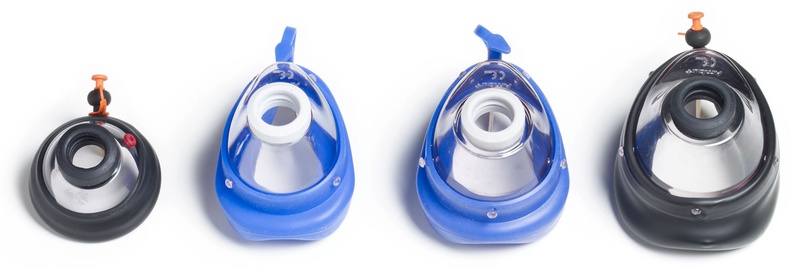 Fig. 12 Beatmungsmasken unterschiedlicher Größen: 0, 2, 3/4, 5. Die Farben der Masken haben keine besondere Bedeutung.#