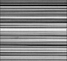 Fig. 112 Barcode Sign im M-Mode: Die aufgrund des Pneumothorax unbewegten Konturen imponieren als Striche wenn die Echos über die Zeit aufgetragen werden. [© Cuprschomynv, ℓ PD]#