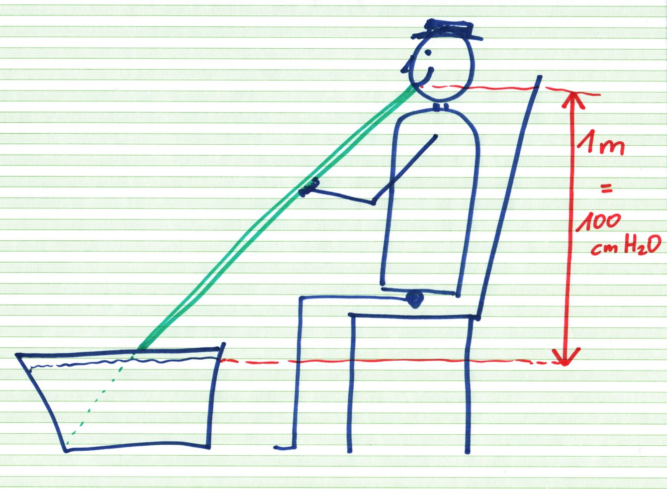 Fig. 115 Physik des Ballermann-Urlaubs, Teil I: Um einen Margarita über 1 Meter anzusaugen, wird ein Sog von -100 cm H₂O benötigt. Nach dem gleichen Prinzip funktioniert ein Wasserschloss.#